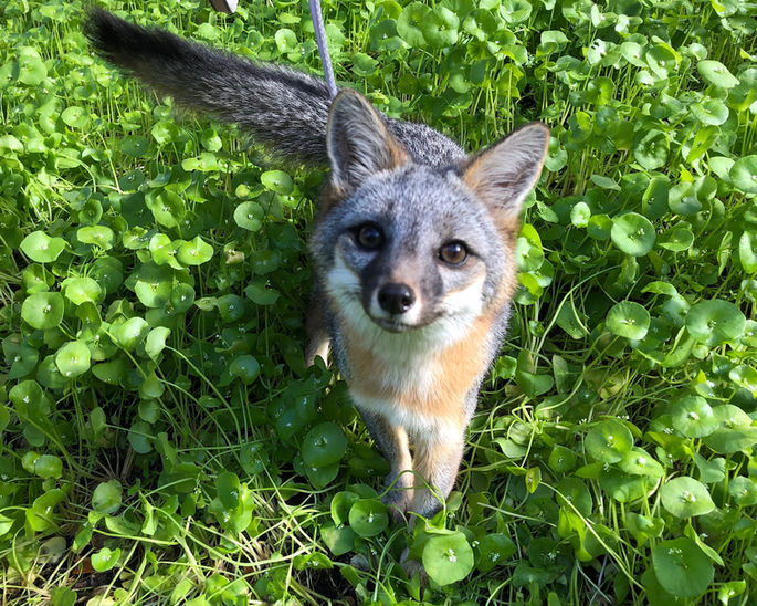 Spring came to us from Northern California in the fall of 2018 at 7 months old. We got a call from a rehab facility saying they had a very friendly and habituated gray fox. We thought it would be great to have a young friendly gray fox, but how friendly was she really? Well, they sent us video of them holding her while she gave them kisses on the mouth (this is how she earned the nickname kissy fox). We went to pick her up a few days later.
